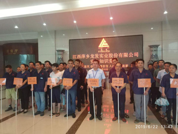 努力開拓龍發(fā)實(shí)業(yè)安全生產(chǎn)工作新篇章——龍發(fā)實(shí)業(yè)2019年安全知識(shí)競(jìng)賽活動(dòng)圓滿成功2019年6月22日,江西萍鄉(xiāng)龍發(fā)實(shí)業(yè)股份有限公司安全生產(chǎn)知識(shí)競(jìng)賽順利舉行,來自公司的10個(gè)代表隊(duì)共50名選手經(jīng)過激烈角逐參加了此次決賽,本次安全生產(chǎn)知識(shí)競(jìng)賽是龍發(fā)實(shí)業(yè)舉辦的安全生產(chǎn)知識(shí)競(jìng)賽,公司各級(jí)...