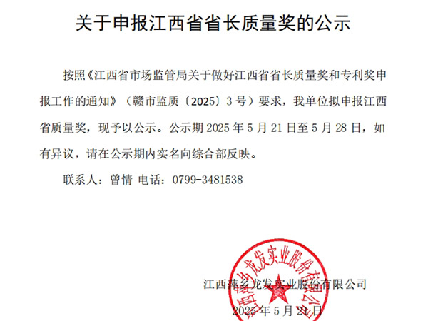 關(guān)于申報(bào)江西省省長質(zhì)量獎(jiǎng)的公示2025/05/21
