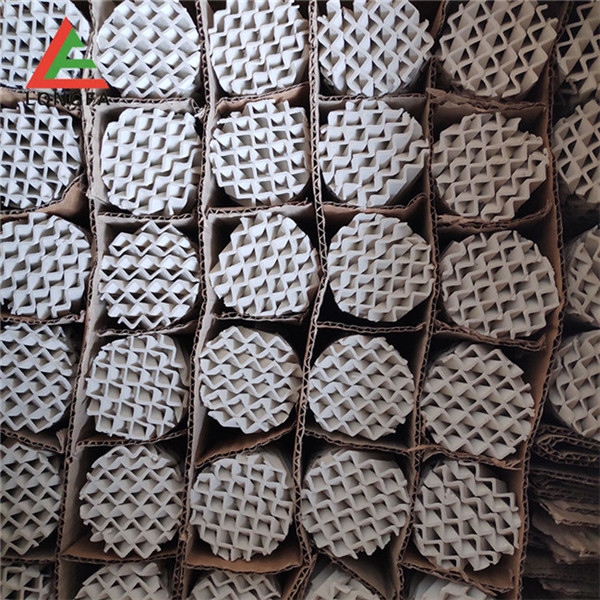 陶瓷規(guī)整填料是一種在培內(nèi)以均勻幾何圖形排布,整齊堆砌的培填料。規(guī)整填料主要是取代塔內(nèi)散堆填料,解決阻力大、比表面積小,傳質(zhì)效能差、易破碎等突出問題。它規(guī)定了氣液流路.改善了淘流、壁流和潤濕性能.降低了阻力,同時提供更多的氣液接觸面積從而提高了傳質(zhì),傳熱效果??蓮V泛用于煤氣洗滌塔.焦化洗滌,洗苯、洗氨培、化肥熱氣飽和、脫硫酸、硫酸干燥、吸收塔等。陶瓷波紋規(guī)整填料是用硬質(zhì)瓷構(gòu)成,主要成分粘土、石英、長石等經(jīng)特殊烘燒而成。其形成是由許多具有相同幾何形狀的單元體波紋片相互平行,叉疊加組成。